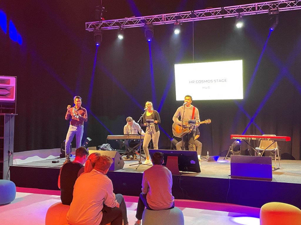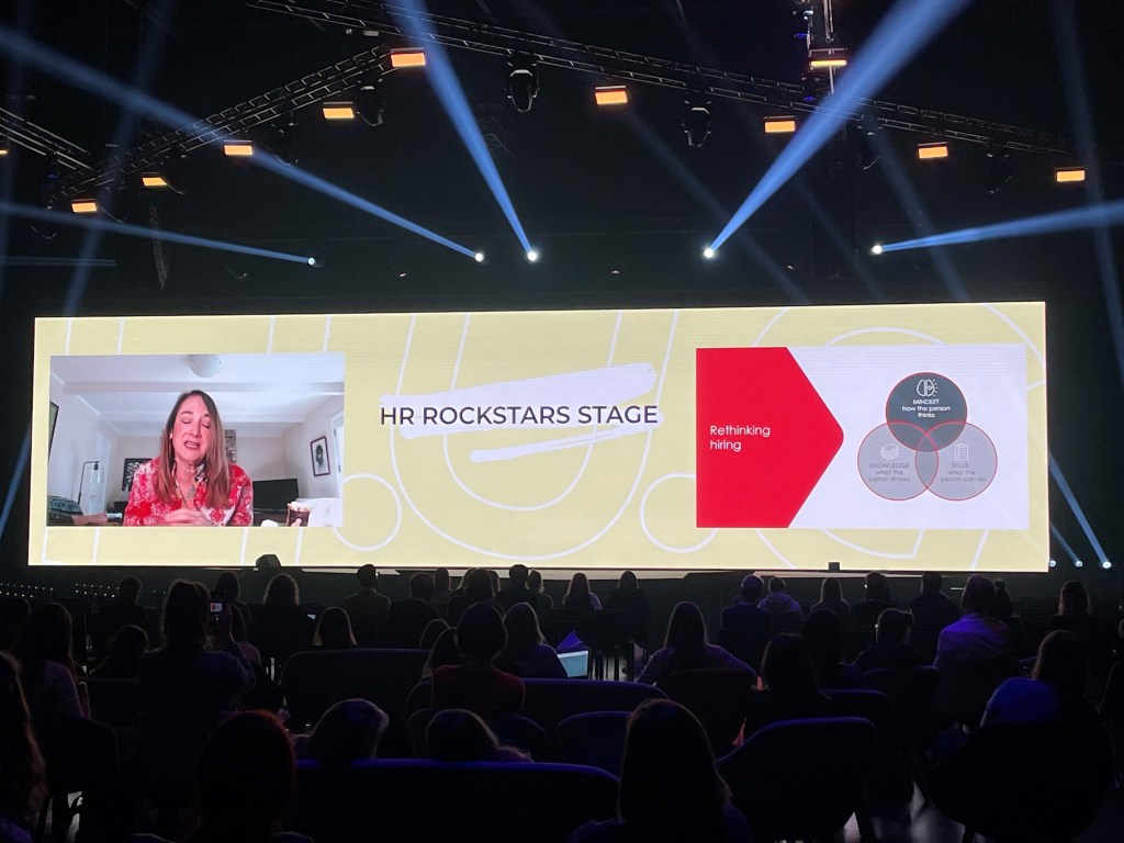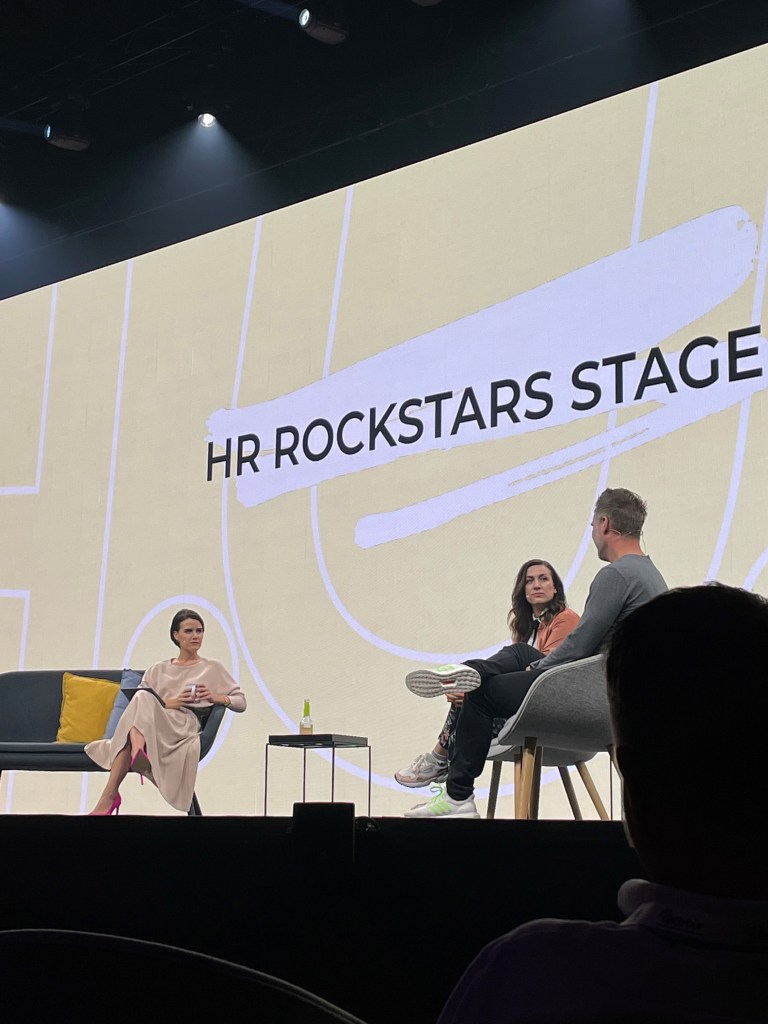 Tag 2 startete dabei mit einem Highlight: HR Rookies Co-Founderin Curley rockte die Bühne mit ihrem Input zu „Personal Development – Der Schlüssel zur Mitarbeiter:innenbindung in dynamischen und crossfunktionalen Teams“ (siehe Titelfoto). Die Rookies unterstützten als Cheerleader vor Ort und virtuell. Daneben gab sich beispielsweise Beth Davies, die aus ihrer Zeit bei Tesla berichtete, oder Bruno Klein, Interims-Leiter Personal beim 1. FC Köln, die Klinke in die Hand. Noch ganz besonders erwähnenswert war die Paneldiskussion mit Magdalena Rogl von Microsoft Deutschland und Stefan Scheller von der DATEV AG, seines Zeichens „Persoblogger“, die gemeinsam mit Moderatorin Yara zum hybriden Arbeiten ganz im Sinne der H.U.G. gesprochen haben.